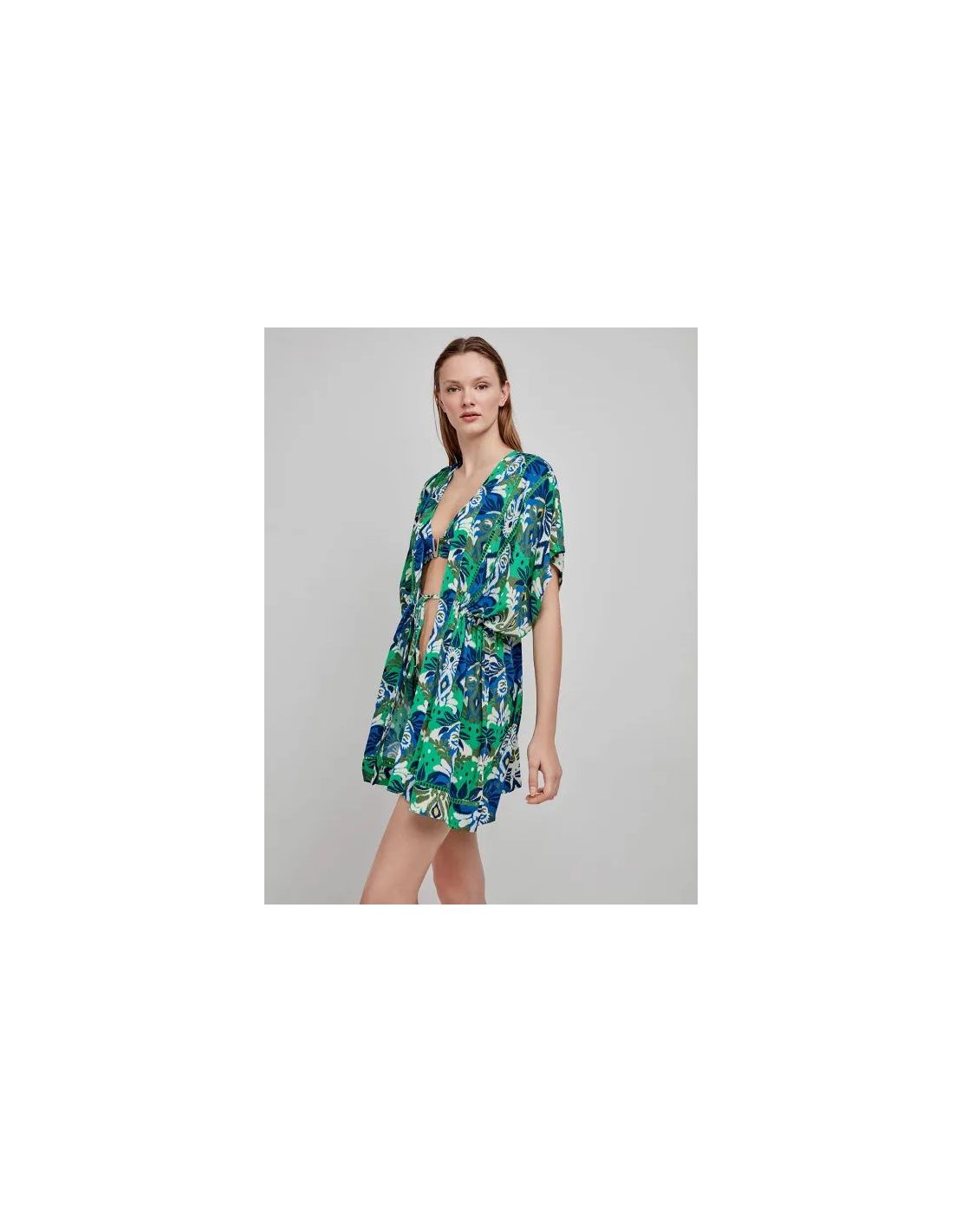 Caftán en tejido de viscosa y ajustable en cintura con cordón. Disponible en dos colores. Combínalo con sus bikinis y bañadores a juego.
