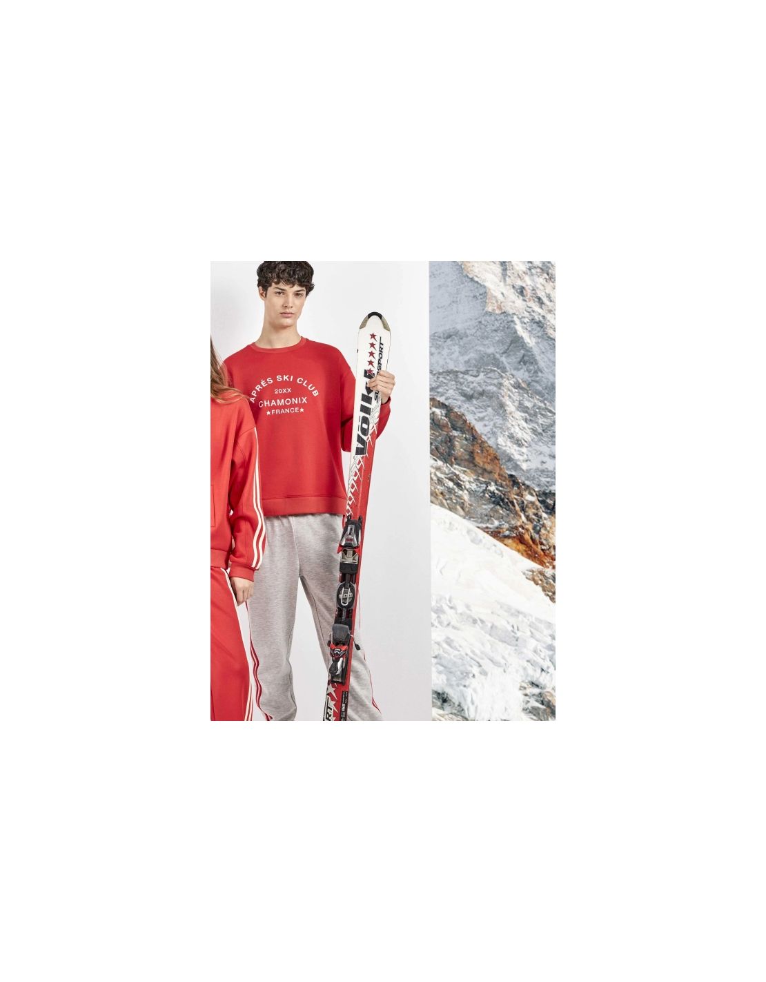 Pijama de hombre confeccionado en tejido de felpa elástica. Camiseta con sisa caída, detalle de líneas verticales a contraste en el lateral de la manga, y cuello caja con texto 'Après Ski Club' posicionado en centro delantero. Pantalón a juego en color gris a contraste con la camiseta y detalle de líneas verticales en laterales. Cinturilla elástica ajustable con cordón y puños elásticos para mayor comodidad y ajuste. Un look perfecto para estar en casa abrigado y con estilo.