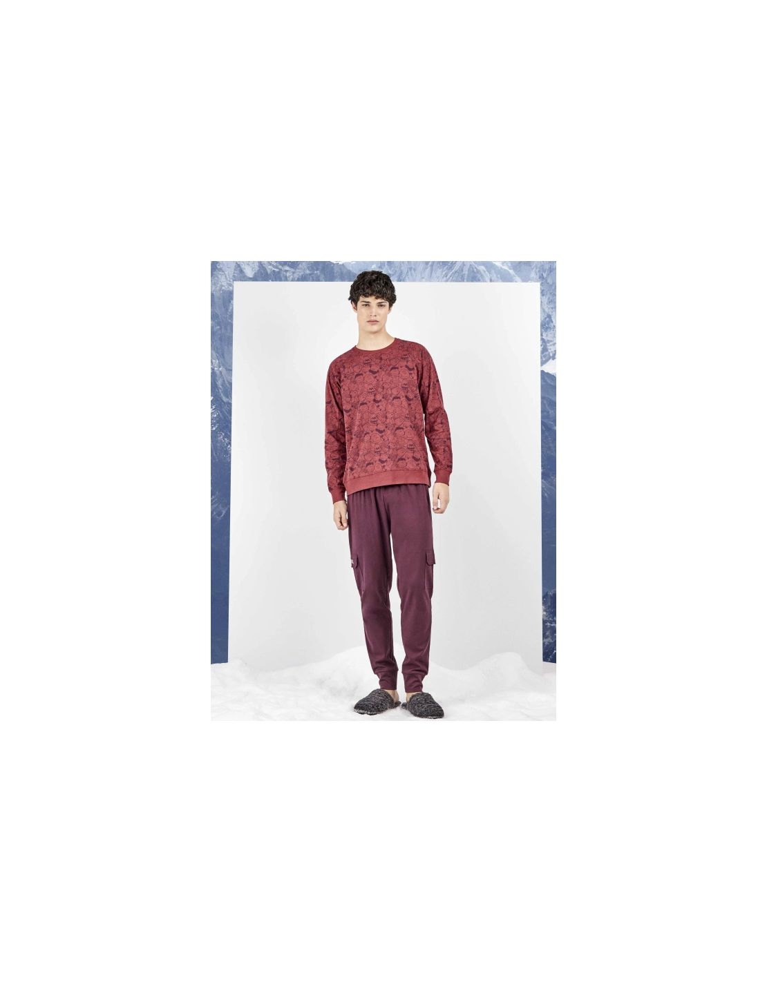 Pijama de hombre de Snoopy confeccionado en tejido de punto interlock. Camiseta con manga raglan larga y cuello caja con estampado tono sobre tono. Pantalón liso a conjunto, incluye detalle de bolsillos en los laterales con etiqueta y cinturilla elástica con cordón ajustable, proporcionando comodidad.