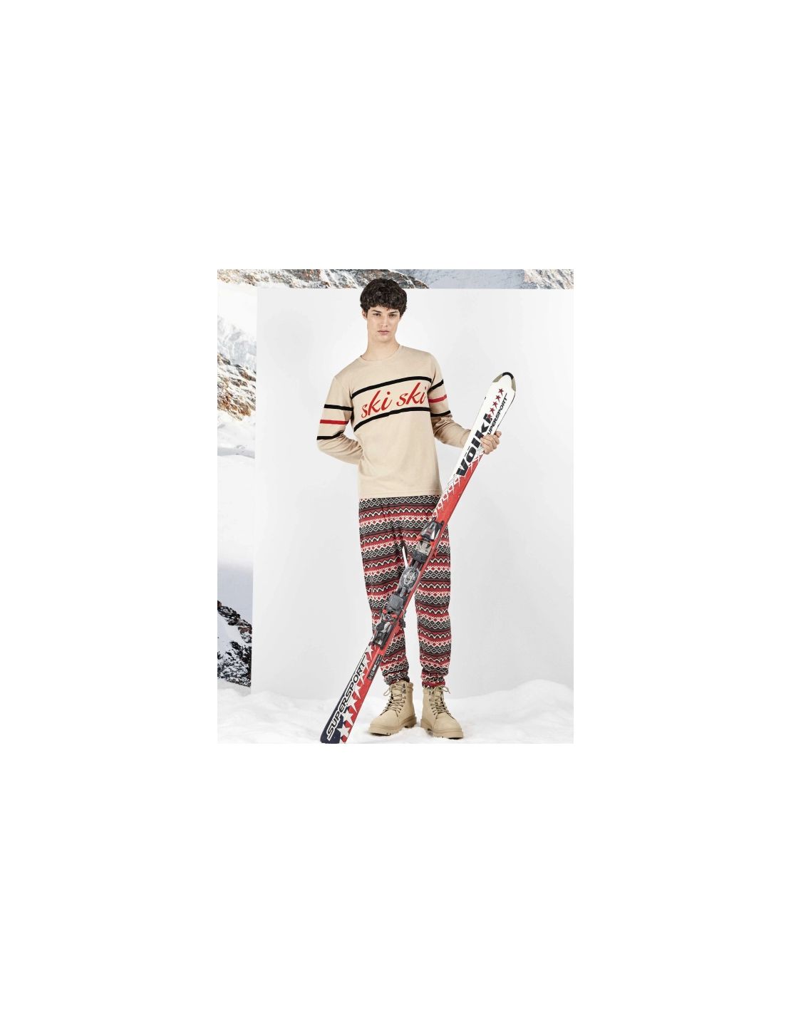 Conjunto pijama hombre ski con pantalón estampado a contraste