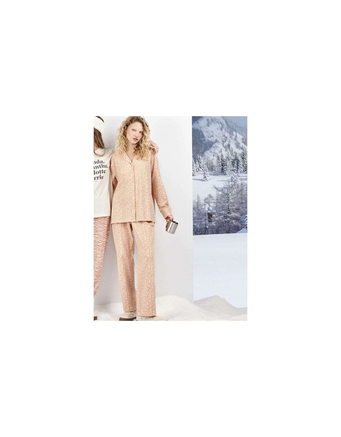 Pijama camisero confeccionado en tejido de algodón con elastano. Camisa de manga larga abotonada y terminación en puño, con cuello camisero y detalle de etiqueta Sex and The City. Pantalón largo con estampado a juego, cinturilla elástica con etiqueta de Sex and The City posicionada en centro delantero. Un look cómodo y elegante para momentos de descanso.
