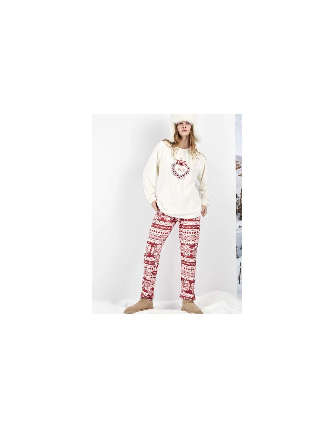 Pijama Frida Kahlo estampado en tejido polar elástico