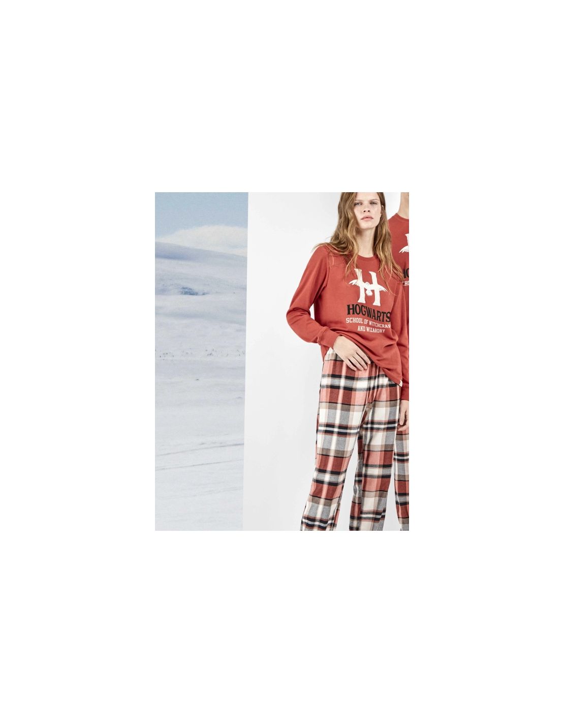 Pijama confeccionado en tejido de punto interlock. Camiseta de manga larga, con terminación en puños y estampado posicional Harry Potter combinado con bordado y flocado en el delantero. Pantalón largo a juego, con motivo de cuadros, confeccionado en tejido de franela, con cinturilla elástica y cordón ajustable y puños en el bajo para mayor sujeción. Aporta calidez y estilo en las noches más frías. Opciones a conjunto para toda la familia.