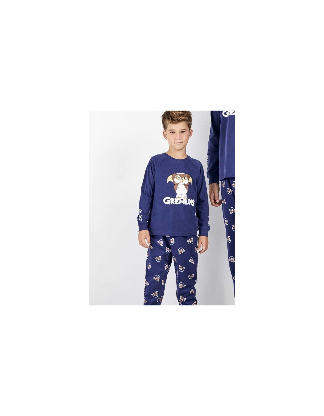 Pijama kids confeccionado en tejido de algodón 100%. Camiseta de manga larga ranglan, con estampado posicional Gremlins en centro delantero y mangas, y cuello caja. Pantalón largo a juego con microestampado, cinturilla elástica y puños en el bajo. Un diseño divertido pensado para momentos de descanso. Opciones a conjunto para toda la familia.