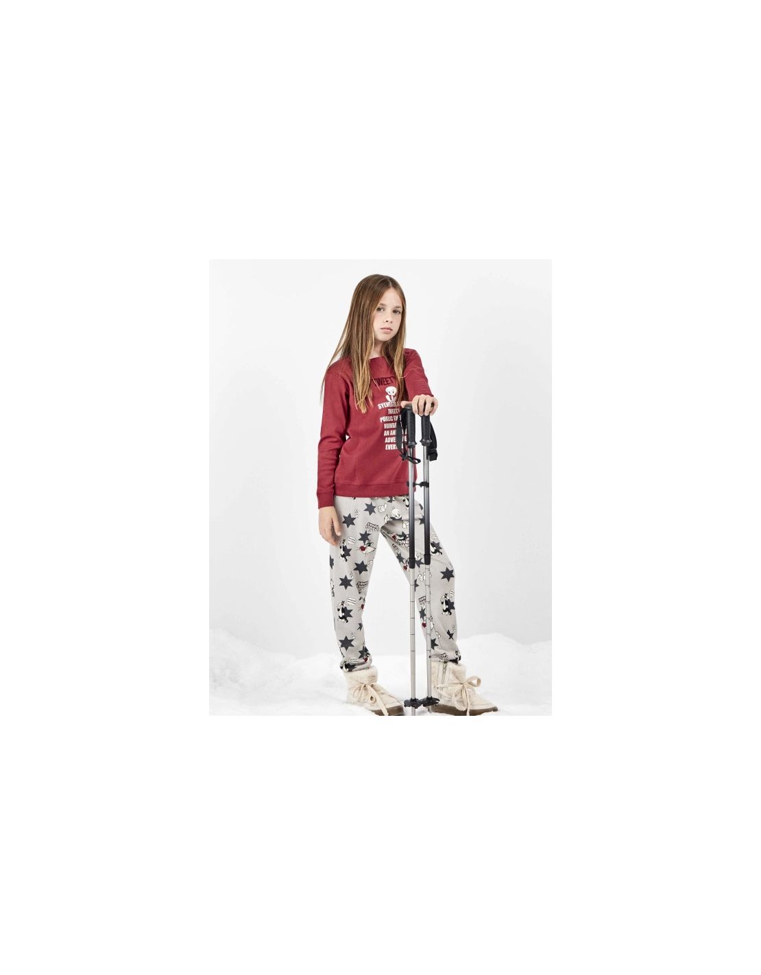 Pijama kids confeccionado en tejido de punto interlock. Camiseta de manga larga con terminación en puño, texto estampado flocado Tweety posicionado en centro delantero , cuello caja con detalle triangular a contraste en rib. Pantalón largo con estampado a juego, cinturilla elástica y puños en el bajo. Un look alegre y confortable para disfrutar de momentos de descanso. Opciones a conjunto para toda la familia.