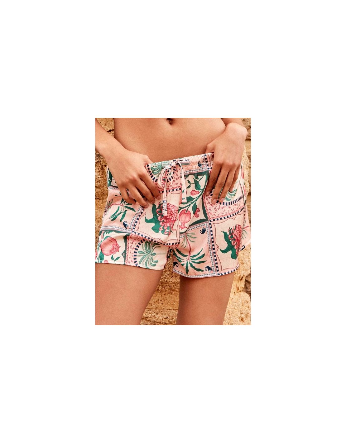 Short satén estampado mosaico floral tropical gisela