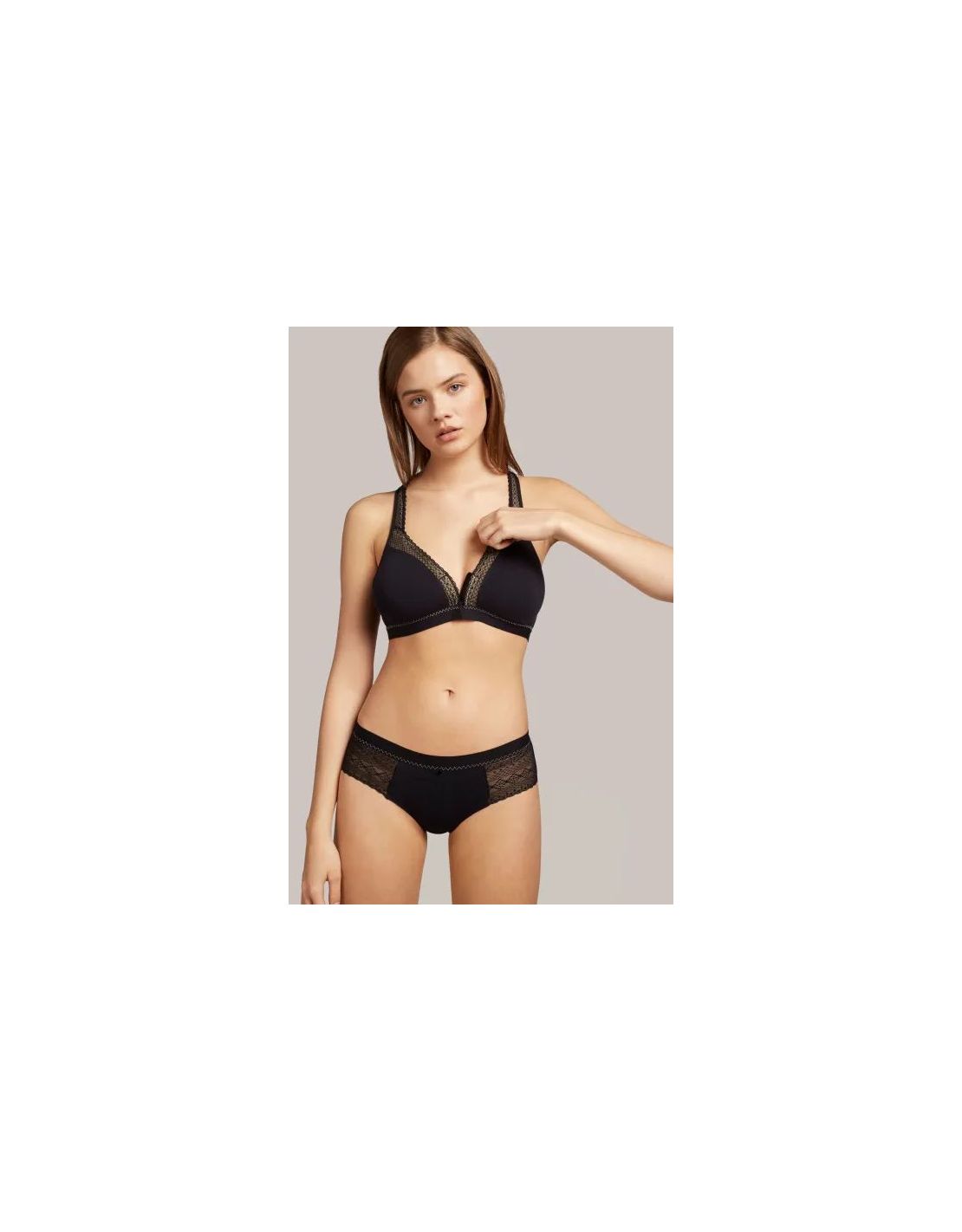 Sujetador post-quirurgico sin aros y sin foam con cierre delantero y funda para prótesis. Disponible en copas B, C y D. Combínalo con su braguita a juego.