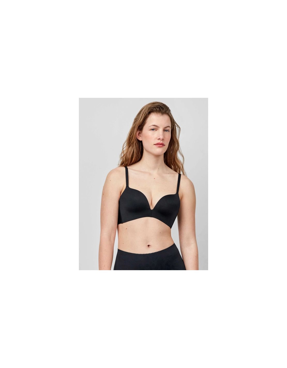 Sujetador push-up sin aros con escote extremo. Base laminada que aporta sujeción y realza el pecho. Espaldillas anatómicas laminadas cortadas a láser que moldean sin presionar. Tirantes regulables multiposición con posibilidad de cruzarlos.