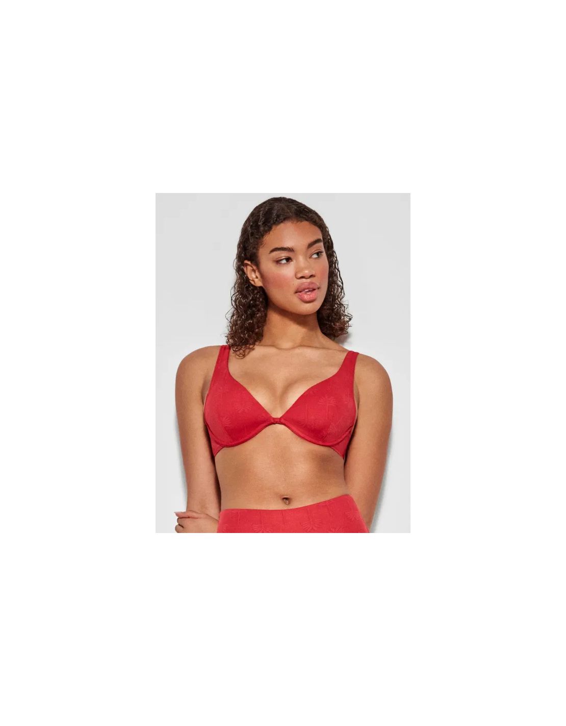 Top bikini con aro y foam con estampado de palmeras bordadas .Tirantes regulables y cierre trasero. Disponible en copas B y C.