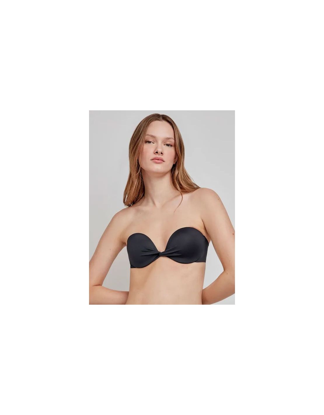 Top bikini bandeau con aro y foam. Tirantes multiposición desmontables y cierre trasero. Disponible en varios colores. Combínalo con el resto de Mix and Match.