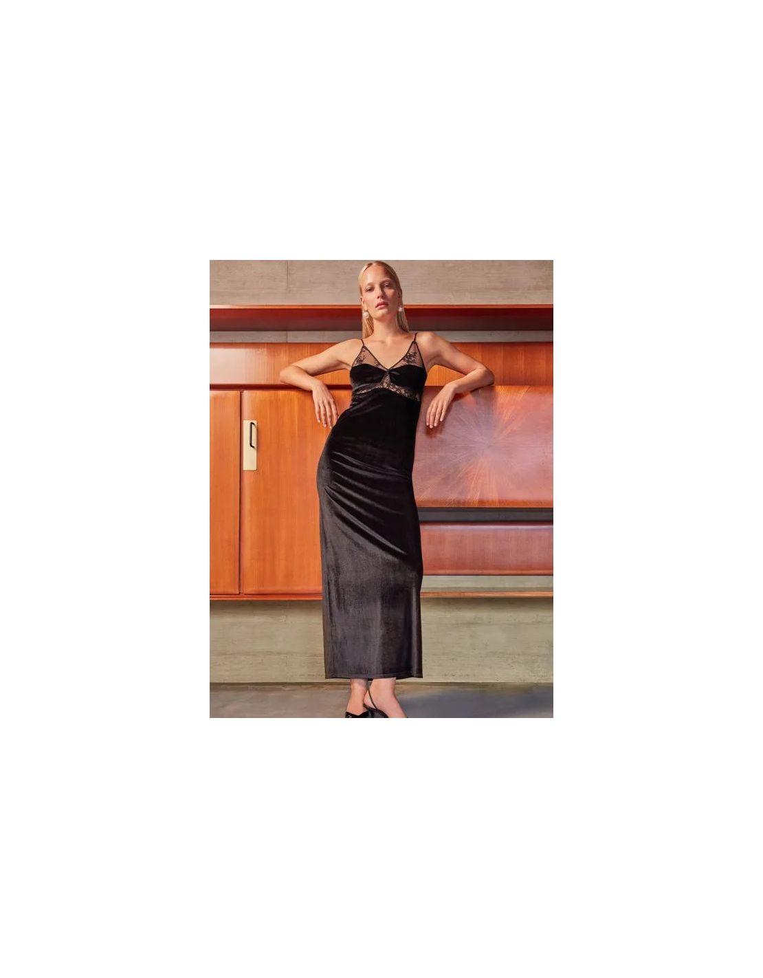 Vestido largo de terciopelo con caída fluida y sofisticada